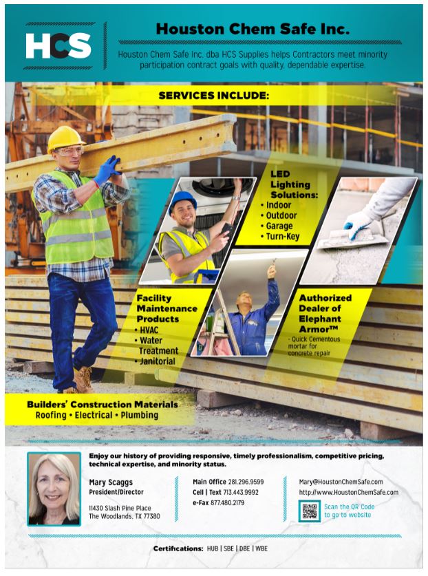 Let Houston Chem Safe Inc. help you with materials, products, and services on municipal/government contracts in these additional metro areas in Texas.